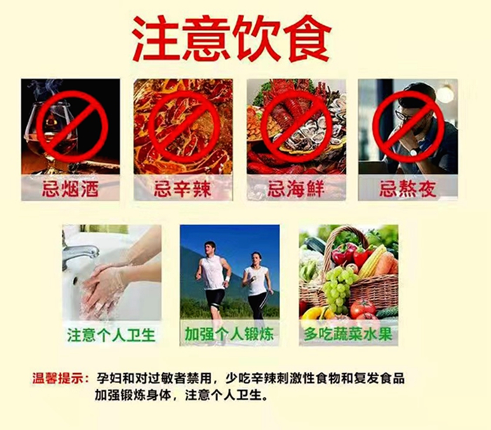 注意事项:不抽烟不喝酒,不吃刺激性食物。